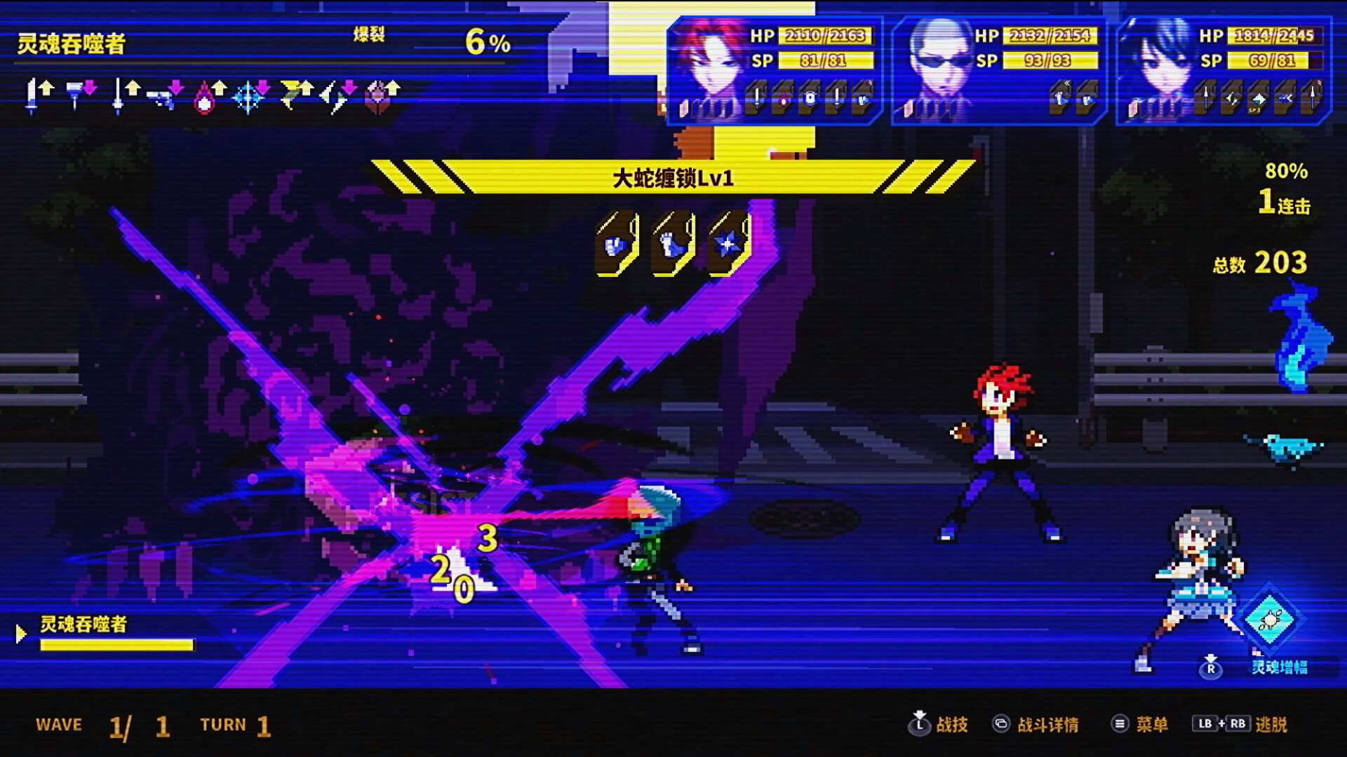 精致的像素风格、生动的动态效果、深具策略性的战斗体现了极度的刺激和沉浸感!掌握好敌人的特性和弱点,灵巧地组合灵魂位片(指令),释放强大的战技(技能)!